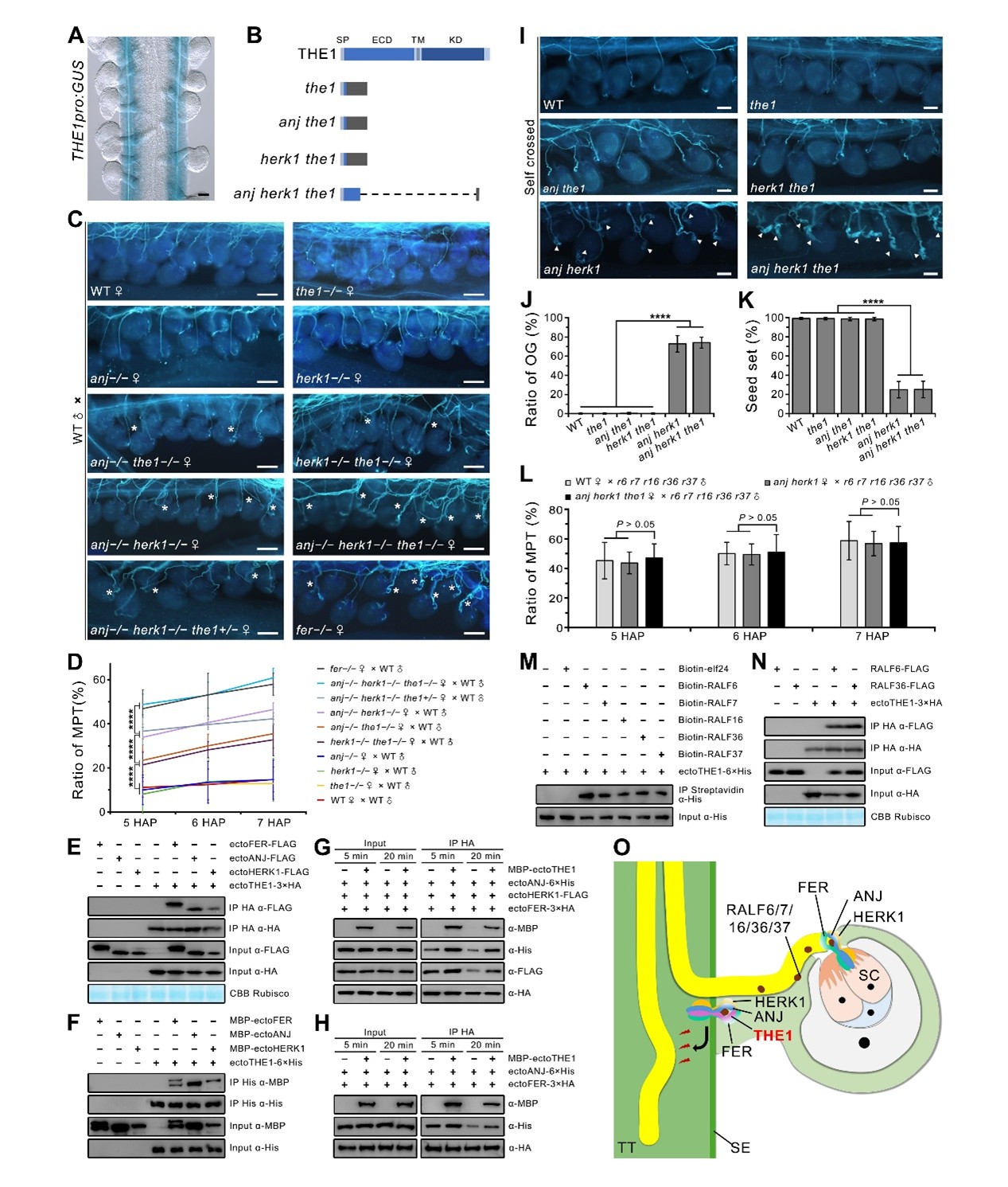 图1. THESEUS1作为受体复合物新组分参与阻止多花粉管穿出隔膜