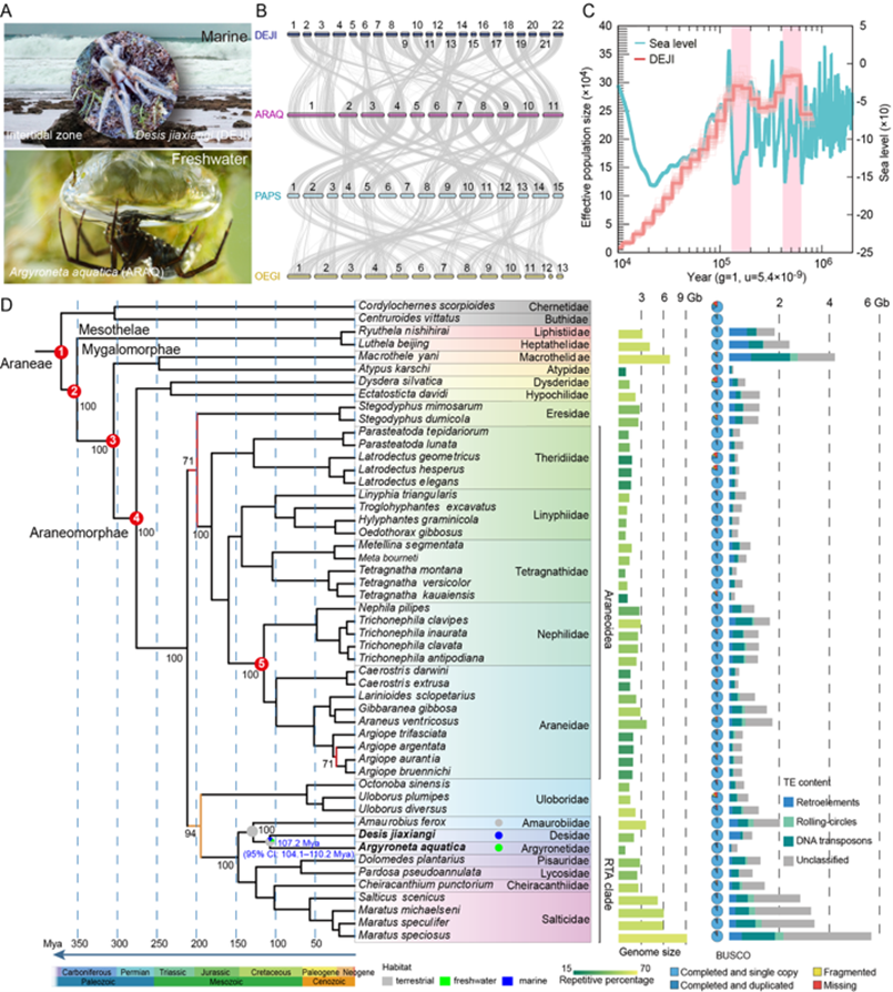 张蔚课题组与合作者揭示潮间带蜘蛛跨越陆海界限极端生存的基因组策略