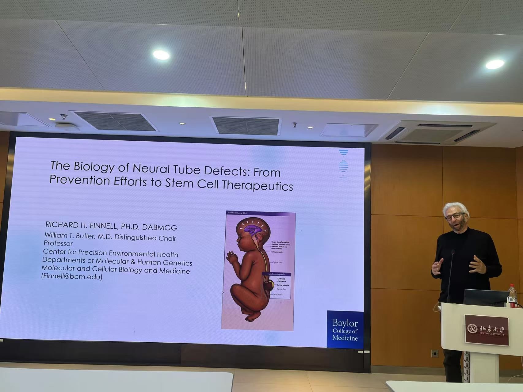 2025年11月18日下午,贝勒医学院精准环境健康中心威廉·T·巴特勒医学博士杰出讲席教授RICHARD H. FINNELL,应北京大学基因功能研究与操控全国重点实验室邀请进行学术访问,并在吕志和楼B101会议室作题为“The Biology of Neural Tube Defects: From Prevention Efforts to Stem Cell Therapeutics”的学术报告。讲座由北京大学生命科学学院、基因功能研究与操控全国重点实验室陆剑教授主持。
